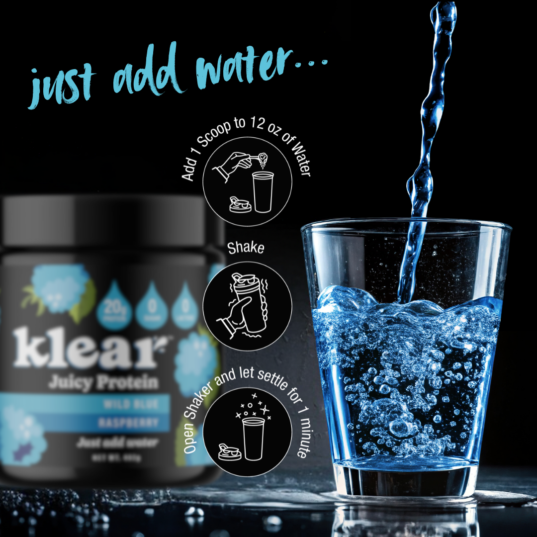 Preparing your Klear protein shake is super easy! Just add 1 scoop of the best strawberry or blue raspberry protein powder to 12 oz of water. Shake it up well, then open the shaker and let it settle for about a minute. It is that simple! Now, you are ready to enjoy a refreshing, clean protein boost anytime.